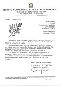 Auguri pasquali del Dirigente Scolastico